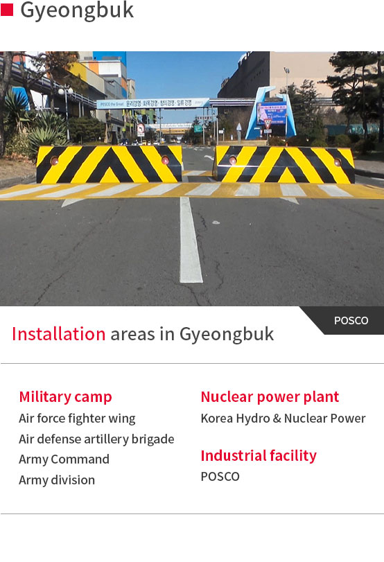 It was invented due to several terror threats using vehicles throughout the world and it is the anti-terror vehicle protection device, roadblock which defends against rushing vehicle in a second. Previous technology takes more than 4 seconds of operation time which requires to secure over 50m of break distance for vehicle that rushes with 50km/h speed. Thus, practically, it is not possible to defend against the terror vehicle. Thus, D&S technology has developed its own control PC (OS) and Operating program to manage, control, exchange information and monitor products in real-time, and also actualized automatic system by linking with various systems.